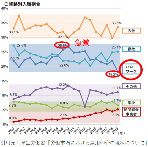 スマホの普及でハローワークには行かず、スマホで「営業 求人 浜松」といった検索をして仕事を探すようになったからです。